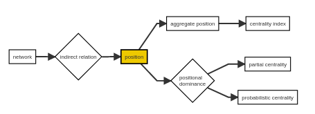 Any centrality analysis starts with identifying the relation of interest, which replaces the choice of index. The relation of interest is usually some graph-theoretic property (e.g. distances) that we assume to be indicative for centrality. The relations of a node to all others is called its position. The aggregation of the relations leads to the definition of indices, hence the usual centrality concept. However, positions can also be compared via positional dominance, the dominance relation introduced in this post, leading to partial centrality rankings and the option to calculate probabilistic centrality rankings.