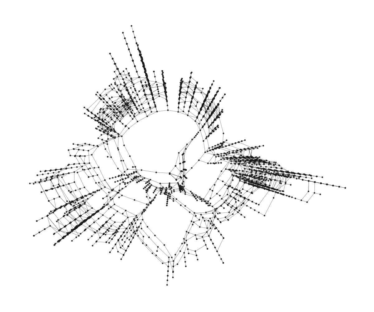 Two layout algorithms for large graphs were added in this version. layout_with_pmds() is similar to layout_with_mds() from igraph, but performs the MDS only on a small set of pivots to reduce computation time. Below is an example using the US PowerGrid network (4941 nodes and 6594 edges). The runtime for the full MDS calculation was 114s.