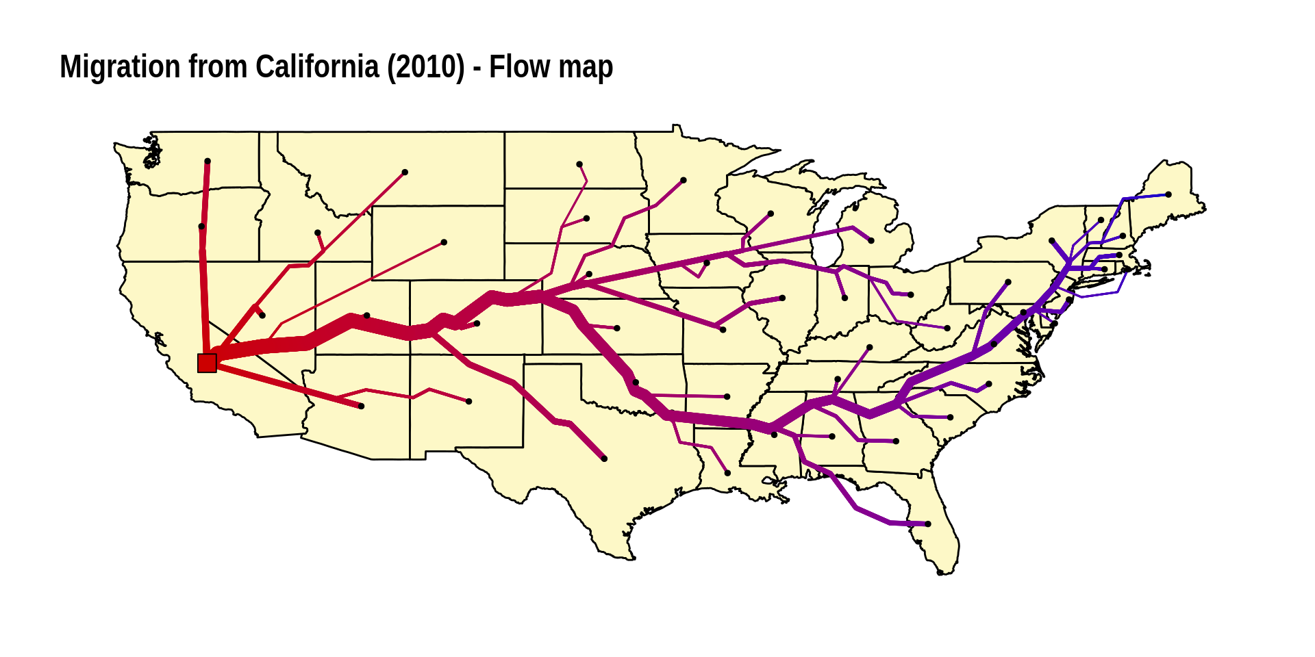 labs(title = "Migration from California (2010) - Flow map")