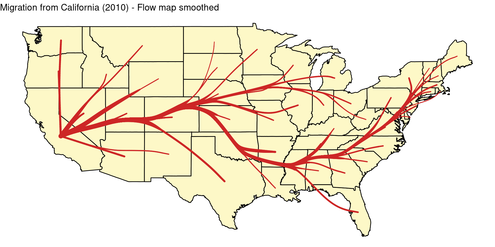 labs(title = "Migration from California (2010) - Flow map smoothed")
