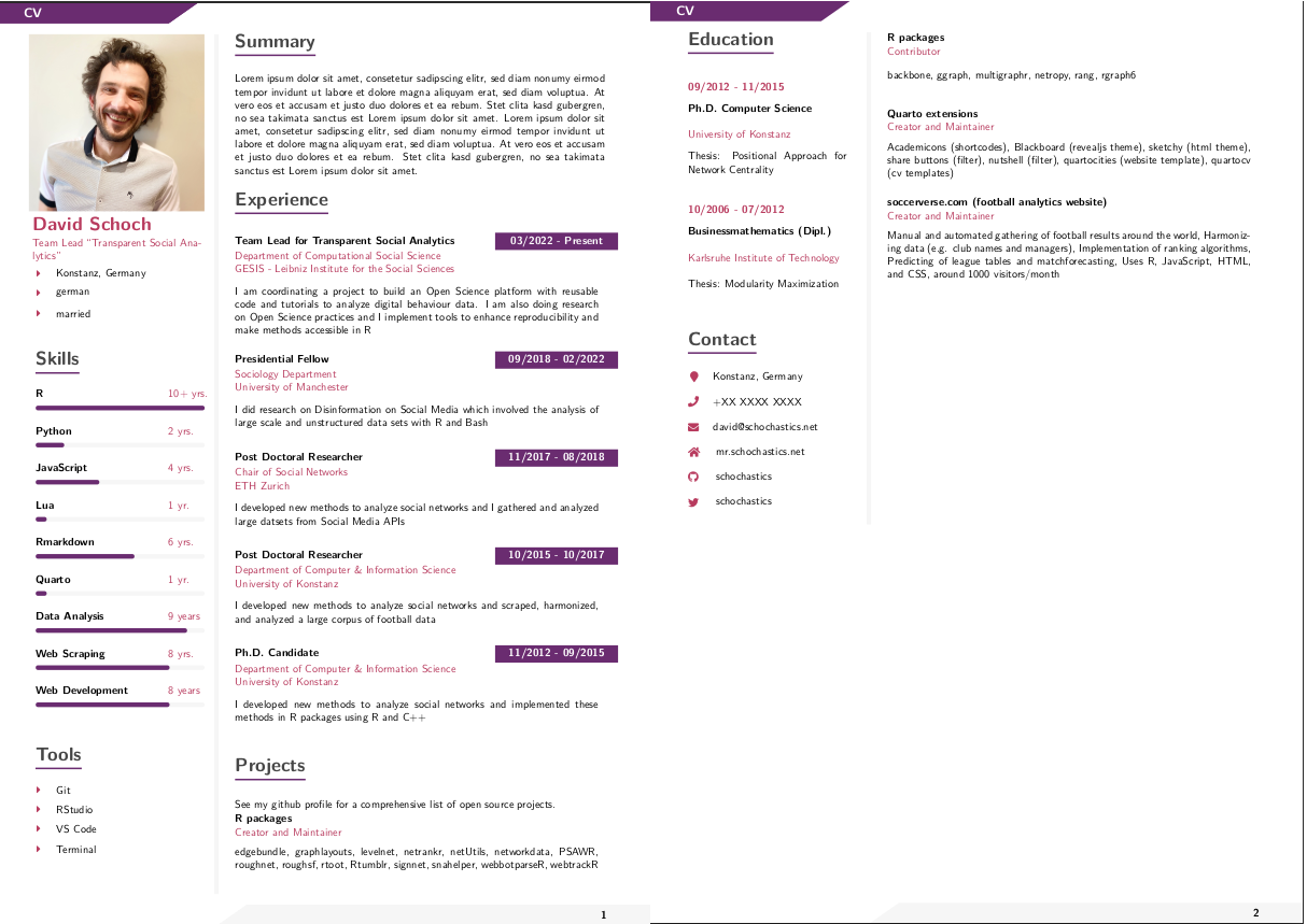 quarto use template schochastics/modern-cvmodern2-cv